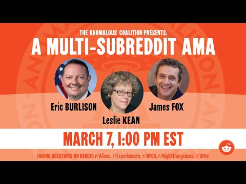 🚨 Today’s the day! Join us TODAY (Saturday, March 7, 2026) for our multi-subreddit livestream AMA [featuring](https://imgur.com/a/4QsOyAO) Representative Eric Burlison (MO-07) and director James Fox, hosted by investigative journalist Leslie Kean. 🕐 Live at: 1:00 PM EST / 10:00 AM PST 📺 Watch Live (All Links) YouTube (Livestream): https://www.youtube.com/live/9bzH1ssL9yI?si=ztNZFoElsGMtkYqx X (Twitter): https://x.com/theanomalousc Twitch: https://www.twitch.tv/theanomalouscoalition ❗ Quest...