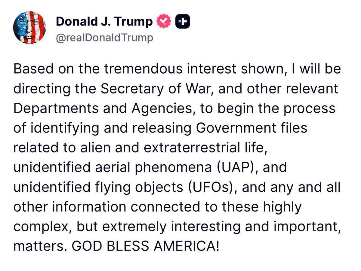 In relation to President Trump and the declassification and release of UAP-related information: In an interview with @KristinFisher SecWar said: "We're digging in. We're going to be in full compliance with that Executive Order, eager to provide that for the President ..." https://t.co/sI4SNRLDUK